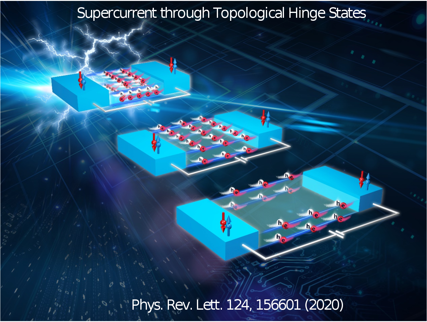 廖志敏课题组进一步构筑了拓扑半金属-超导体约瑟夫森结,发现了4π周期的超导电流以及Majorana零能模【PRL121, 237701 (2018)】;实现了拓扑表面态超导电流的磁场和栅压调控,揭示了轨道干涉效应导致的超导临界电流随面内磁场的周期性振荡效应【Nature Commun.11, 1150 (2020)】;实现了一维拓扑棱态传输的超导电流,提供了higher-order拓扑半金属量子态的输运佐证【PRL124, 156601 (2020)】。