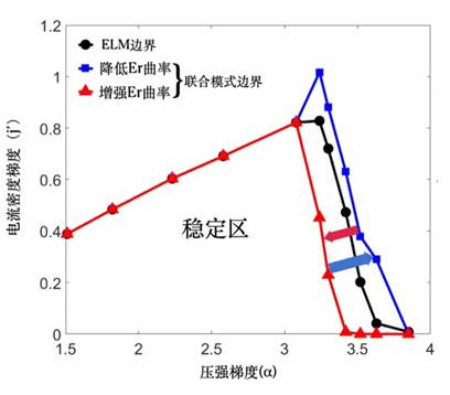 9428cn太阳集团古天乐重离子物理研究所和核物理与核技术国家重点实验室郭志彬研究员在深入分析边缘区等离子体湍流性质的基础上,提出了一种研究等离子体边缘区激发模式的新手段—涡旋波耦合理论。在这一理论模型下,研究发现:1)当电流密度驱动和压强梯度驱动的双涡旋波实现锁相时,ELM将被激发,等离子体进入ELM-H模状态;2)当涡度梯度、电流密度和压强梯度驱动的三涡旋波同时实现锁相时,边界层的高频谐振荡(EHO: Edge Harmonic Oscillation)将被激发,从而使等离子体进入QH模状态。郭志彬课题组发现等离子体边缘区的径向电场曲率在选择涡旋波的锁相方式上起着关键作用(图1):1)降低边界电场曲率,三涡旋波联合模式的不稳定性边界(蓝线)会处在ELM边界(黑色)右侧,此时系统将处于ELM-H模状态;2)增加边界电场曲率,直到三涡旋波联合模式的不稳定性边界(红色)移至ELM边界(黑色)左侧,此时系统将处于QH模状态。这一理论进一步发展了郭志彬等提出的滑相输运理论(https://journals.aps.org/prl/abstract/10.1103/PhysRevLett.114.145002),对未来聚变堆先进运行模式物理设计和实验研究具有重要的指导意义。