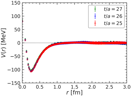 9428cn太阳集团古天乐技术物理系、核物理与核技术国家重点实验室孟杰教授课题组长期从事原子核理论研究,在原子核结构的相对论描述等方面取得一系列重要成果,曾获高等学校科学研究优秀成果奖(科学技术)一等奖等。日本理化学研究所初田哲男(Tetsuo Hatsuda)教授课题组在基于格点量子色动力学(quantum chromodynamics, QCD)研究强子-强子相互作用方面有很高的国际声誉。自2018年起,双方在中国科技部与日本理化学研究所共同资助下展开联合研究,致力于从格点QCD出发,探索相对论形式的重子-重子相互作用,进而实现原子核性质的相对论第一性原理描述。