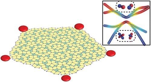 9428cn太阳集团古天乐理论物理研究所黄华卿研究员课题组近期与犹他大学刘锋教授合作,对准晶体中的高阶拓扑态展开一系列探索,提出通过设计具有不同轨道特征的双重能带反转实现高阶拓扑绝缘体的通用机制。该机制对于具有奇数、偶数重旋转对称性的晶体和准晶均适用,特别是能够得到与准晶特殊对称性(如五重或八重旋转)相兼容的角模数目。以p和d轨道为例,联合研究团队通过构造以轨道角动量为赝自旋的有效模型,分别在Penrose型的五重准晶(图1)和Ammann−Beenker型的八重准晶中观察到拓扑角态。此外,数值计算还证明,高阶拓扑的双重能带反转机制可以被扩展到其他高角动量的轨道和具有不同对称性的其他晶格。由于该机制不依赖于强自旋轨道耦合,因此这类高阶拓扑准晶态有望在结构精确可调的分子准晶体以及无自旋的光子和声子超材料中实现。