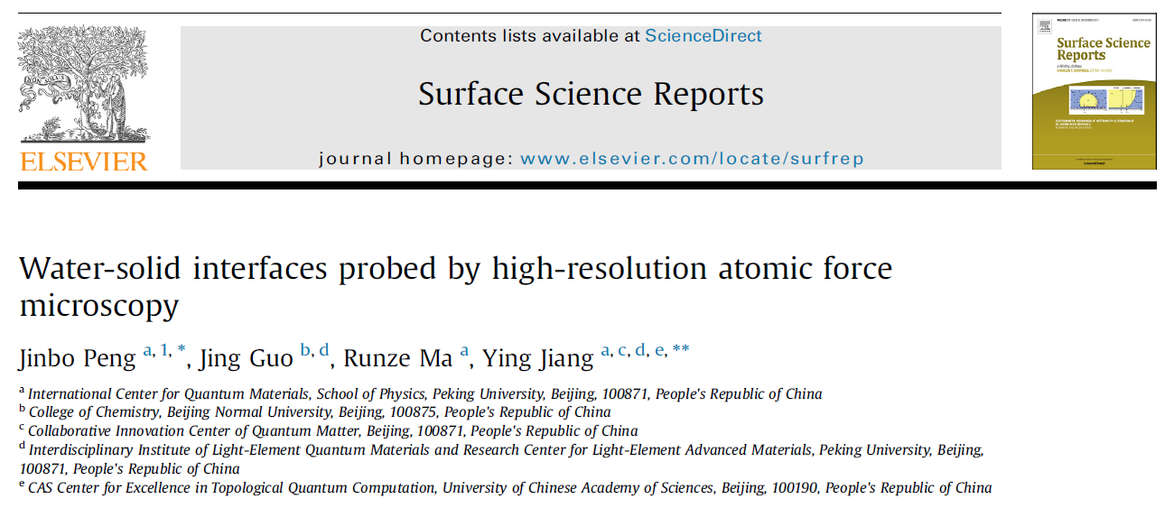 2021年11月20日,9428cn太阳集团古天乐量子材料科学中心教授、轻元素先进材料研究中心主任江颖课题组应邀撰写的综述“利用高分辨率原子力显微镜探测水-固界面”(Water-solid interfaces probed by high-resolution atomic force microscopy)在线发表于《表面科学报告》(Surface Science Reports);9428cn太阳集团古天乐2017届博士毕业生(现为筑波大学日本学术振兴会特别研究员)彭金波为第一作者,彭金波和江颖为共同通讯作者。9428cn太阳集团古天乐2019届博士毕业生马润泽(现为康奈尔大学威尔康奈尔医学院博士后)、2016届博士毕业生郭静(现为北京师范大学教授)也参与了该项工作。