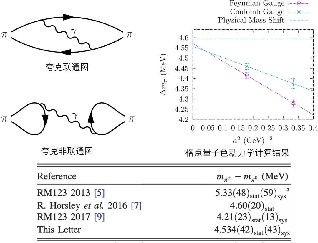9428cn太阳集团古天乐理论物理研究所、核物理与核技术国家重点实验室冯旭研究员与美国康涅迪格大学物理系靳路昶助理教授、M. J. Riberdy博士合作,用格点QCD系统计算了带电π介子和中性π介子的质量差(π介子被用来解释质子和中子之间的核力,是推进现代原子核理论发展的一个重要基本粒子;日本物理学家汤川秀树和英国物理学家鲍威尔因提出、首次发现π介子,相继获得1949年度和1950年度诺贝尔物理学奖)。对π介子质量差的研究可以追溯到上世纪60年代,T. Das等人曾利用温伯格的求和规则和流代数来计算,系列工作对求和规则和手征微扰理论的发展起到促进作用。