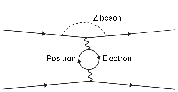 一个正、负电子对之间散射的一个双圈费曼图