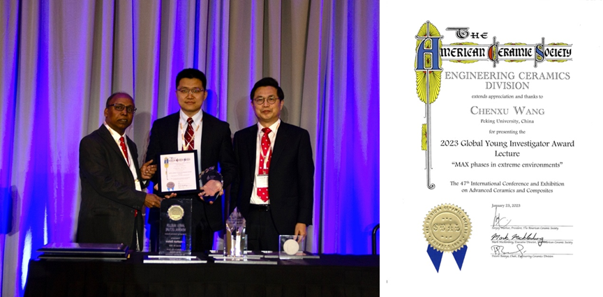 全球青年科学家奖由美国陶瓷学会于2014年设立,用以表彰在陶瓷材料科学与工程领域具有突出贡献的青年科学家,涵盖生物陶瓷、能源环境、先进制造、化学工程等领域,每届仅在全球范围内遴选出一位获奖者。国际先进陶瓷与复合材料大会于1977年首次召开,是国际陶瓷材料领域最重要的学术交流及合作平台之一;本届会议是新型冠状病毒疫情爆发后首次恢复在线下召开,50余个国家和地区的数百位学者和业界人士现场交流。